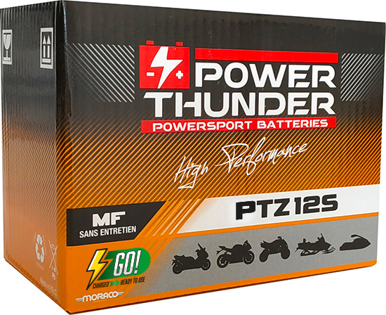 BATTERIE PTZ12S – Power Thunder : Une batterie activée en usine (FA, Factory Activated), conçue avec des matériaux de qualité pour remplacer parfaitement la batterie d’origine et offrir des performances supérieures.