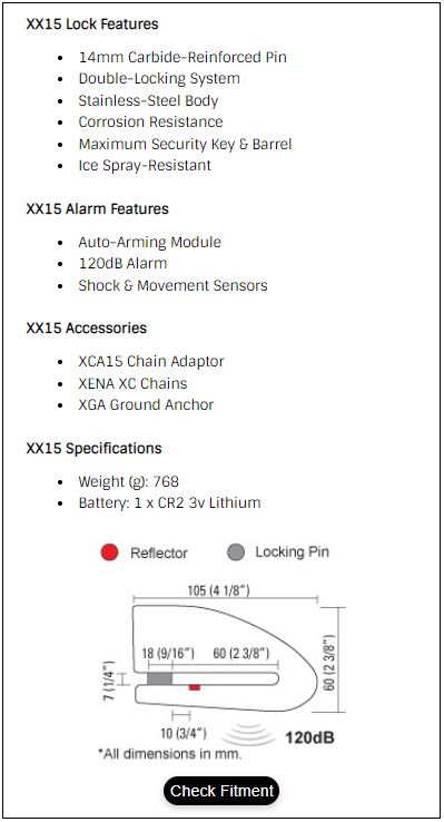 Conseil de sécurité : Pour optimiser la protection de votre moto, utilisez le bloque disque XX15 en complément d’un antivol chaîne homologué. Cette double sécurisation dissuade les voleurs les plus déterminés et répond aux exigences des assurances en cas de vol.
