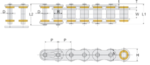 Plaques et rouleaux en acier haute résistance, goupilles chromées, traitement anti-usure et finition dorée.