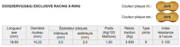 | Type de chaîne | DID 520ERV7 Racing X-Ring |