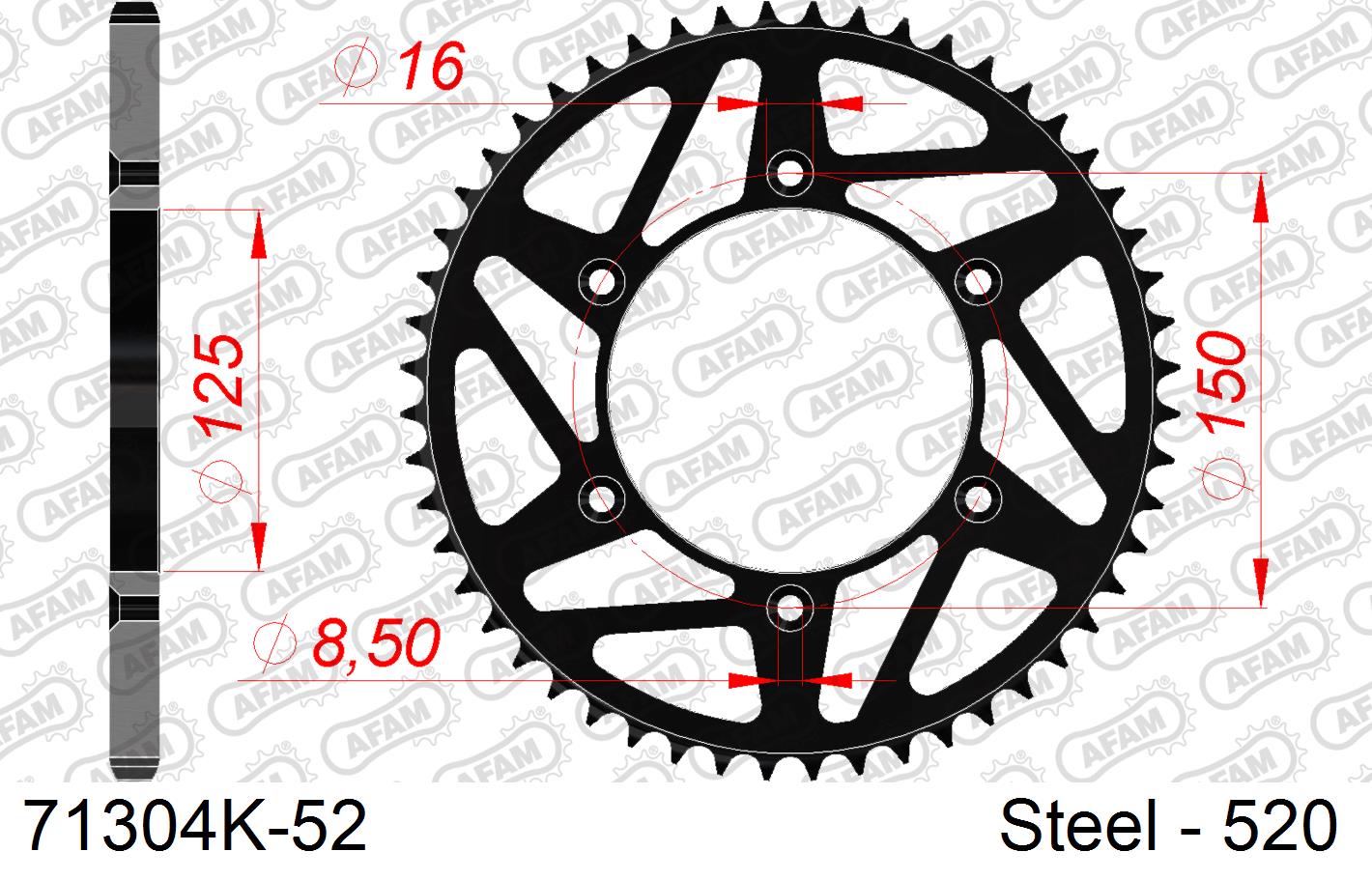 Optez pour une transmission finale fiable et performante avec la couronne AFAM acier noir 52 dents, référence 71304K-52. Compatible avec un grand nombre de motos tout-terrain et enduro dont les modèles Gas Gas EC250 de 2021 à 2024, cette pièce se distingue par sa conception robuste et sa finition soignée.