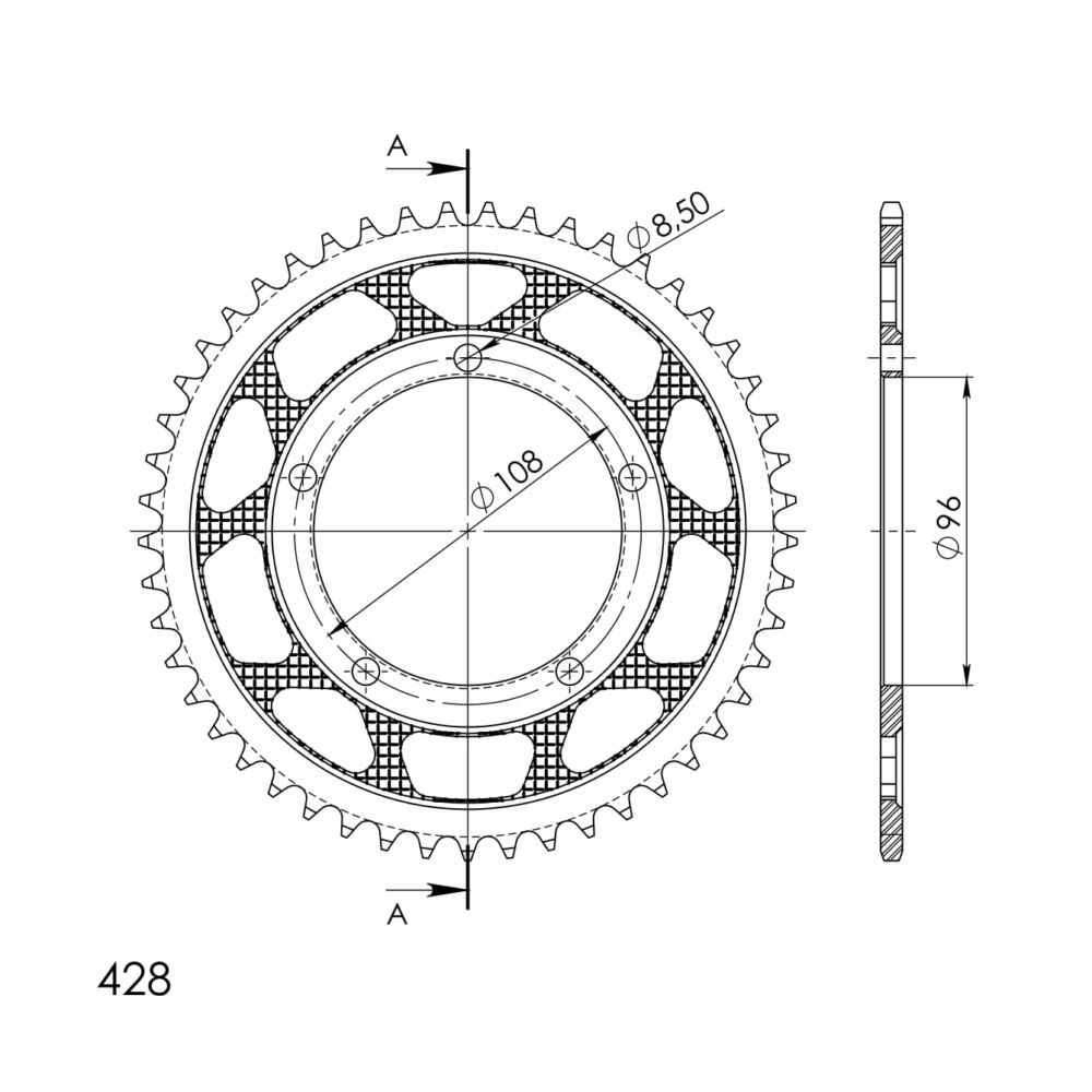 Couronne acier 49 dents (pas 428) Supersprox, compatible MUZ RT125 / SM125 (2002‑2011) ; traitement thermique et finition anti‑corrosion pour une résistance et une longévité accrues.