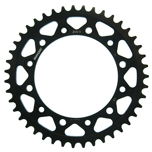 Couronne acier 43 dents pas 520 Supersprox CA50143, compatible Honda FX650 Vigor (1997–2003) et SLR650 (1997–2000). Usinage laser et traitement anti-corrosion pour durabilité et ajustement précis.