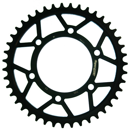 Couronne acier Supersprox 43 dents (pas 525) pour Ducati ST4 S200 (1999–2003), traitement thermique et finition anti-corrosion pour une transmission durable et résistance accrue.