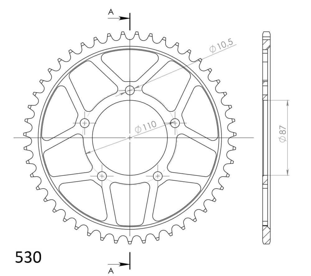 Référence CE60147 ; pas de chaîne 530 ; 47 dents.
