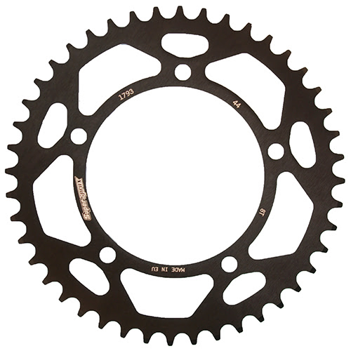 Couronne arrière aluminium 44 dents Supersprox AF605X44, compatible Triumph Daytona 955i (2002) et Tiger 1050 (2007–2014); légère (0,42 kg), anodisée et conçue pour usage routier et sportif.