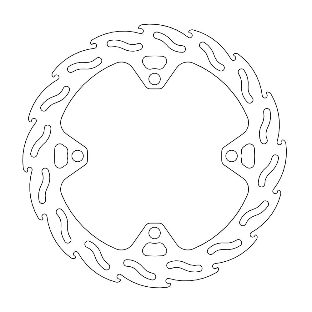 Le disque fixe arrière Moto-Master Flame se distingue par sa forme unique, inspirée des flammes, qui ne sert pas uniquement à l’esthétique. Cette configuration innovante améliore le refroidissement pendant l’usage intensif et permet une meilleure évacuation des résidus (poussière, boue, etc.), contribuant à maintenir des performances stables même dans des conditions extrêmes.
