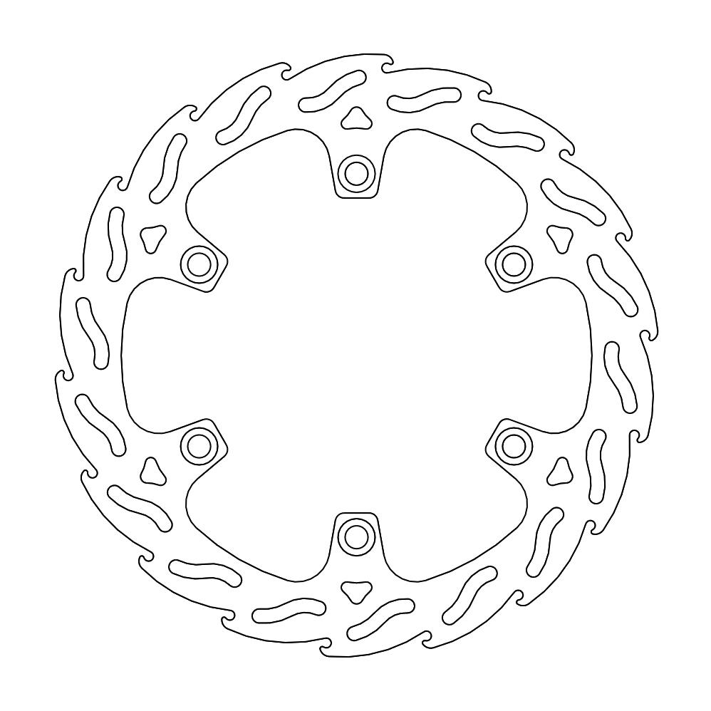 Le disque avant Flame fixe de chez MOTO-MASTER bénéficie d’un design en forme de flamme unique, non seulement esthétique mais surtout fonctionnel. Cette géométrie permet un refroidissement rapide du disque lors de sollicitations intenses tout en garantissant une excellente évacuation des poussières de frein. Résultat : un freinage plus efficace, plus précis et plus constant, même dans des conditions exigeantes ou en conduite sportive.