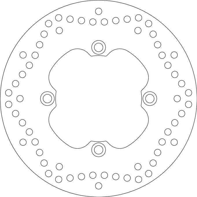 Diamètre extérieur 240 mm, diamètre intérieur 105 mm, épaisseur 5 mm, 4 trous de 10,5 mm et poids 1,27 kg.
