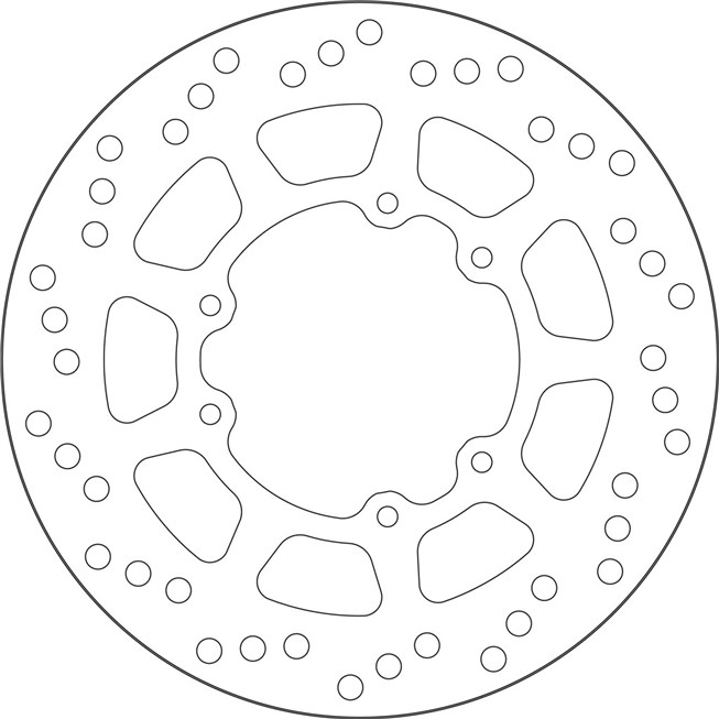 Nombre de trous : 6 ; diamètre des trous : 6,5 mm. Le perçage allège la pièce et évacue la chaleur accumulée lors du freinage.