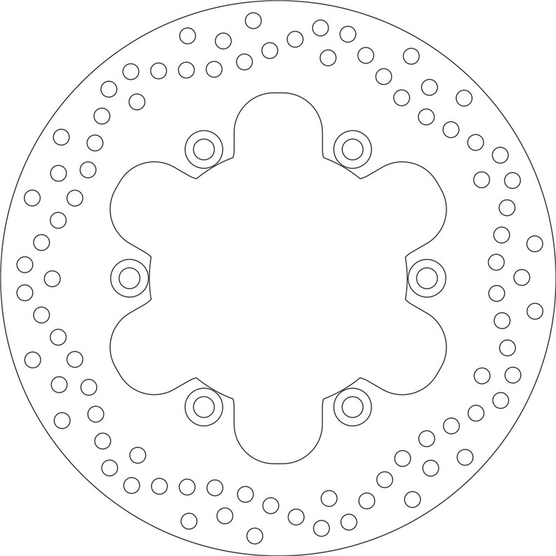Diamètre extérieur 280 mm, diamètre intérieur 130 mm, épaisseur 4,5 mm, 6 trous de 10,5 mm, poids 1,24 kg.