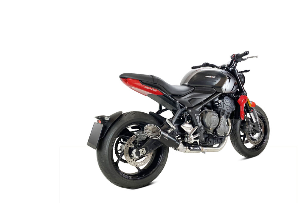 Ligne d’échappement racing MK1 en inox AISI304 finition noir mat, pour Triumph Trident 660 (2021‑2023), 320 mm, 1,18 kg, non homologuée et réservée à la compétition, db killer démontable