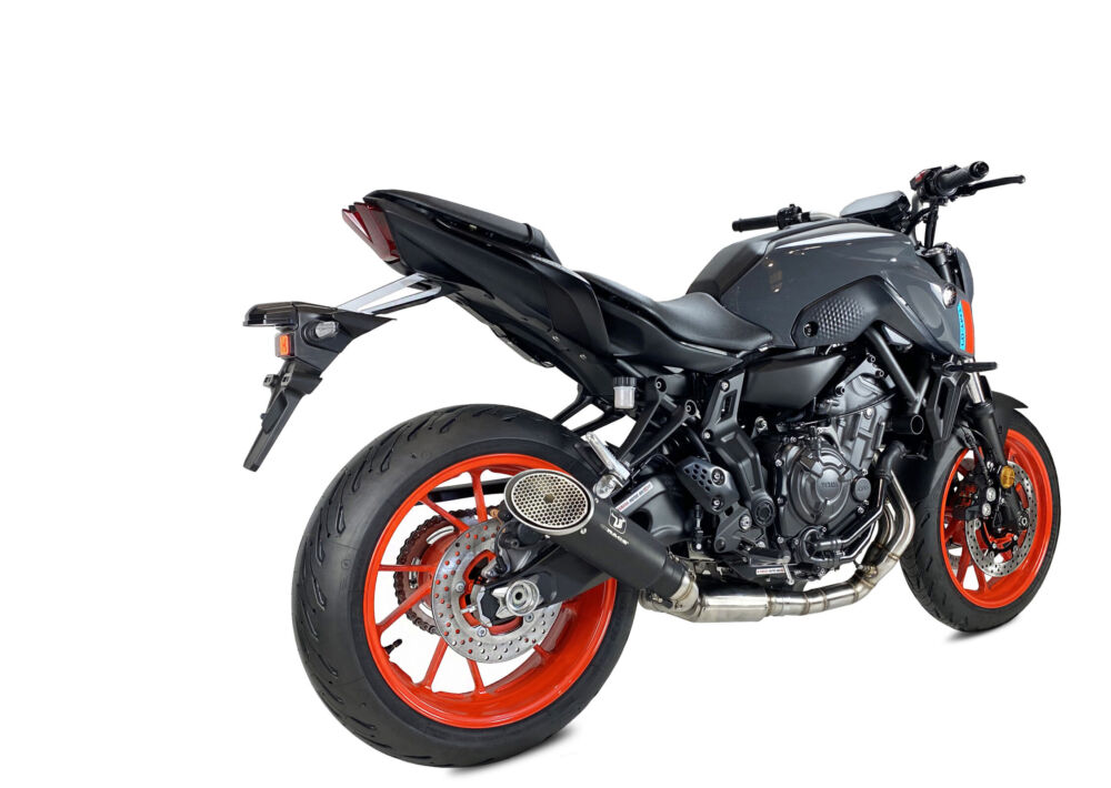 Ligne d’échappement complète IXRACE MK1 en inox noir compatible Yamaha MT‑07 2021‑2023, homologuée EURO5, 320 mm et 1,18 kg pour un gain de poids et une sonorité optimisée.