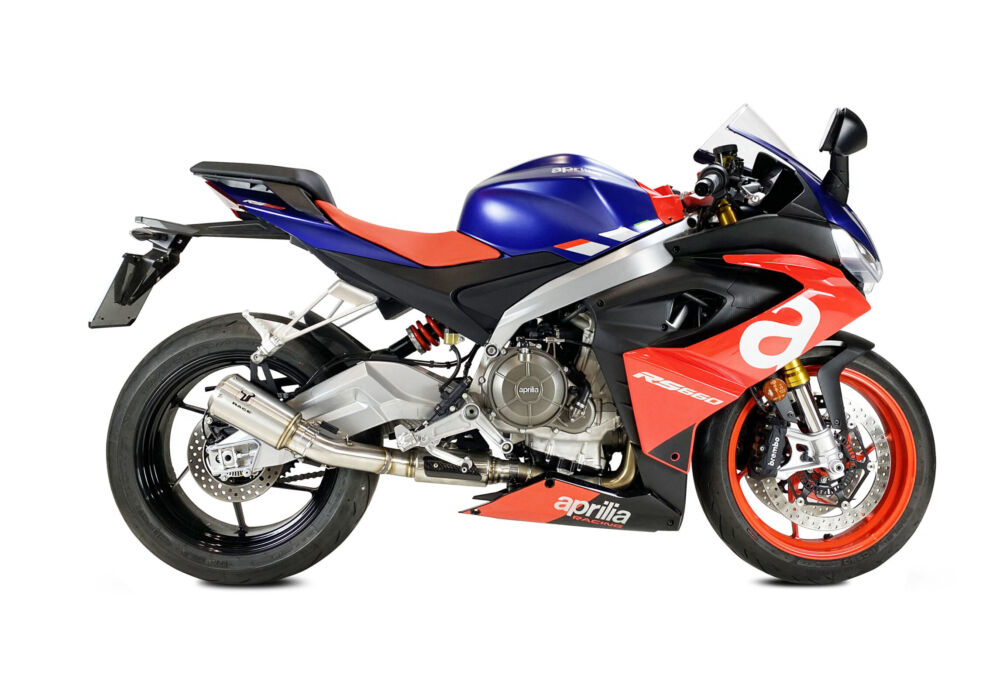 Ligne complète d’échappement racing inox IXRACE pour Tuono/Aprilia RS 660 compatible 2021-2023, non homologuée, 180 mm, 0,9 kg, AISI304, montage compétition avec fixations par ressorts.