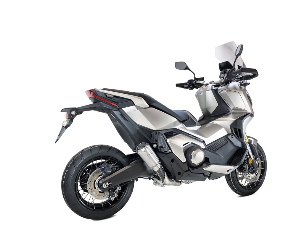 Silencieux inox IXRACE MK2 homologué EURO4/5 pour Honda X-ADV 750 (millésimes 2017–2024), 180 mm, 0,9 kg, embout MotoGP avec système AFS pour sonorité améliorée et gain de poids.