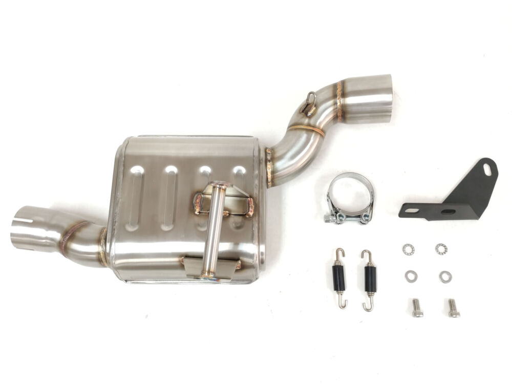 IXRACE Soudures haute qualité T.I.G. Laquagenoir mat haute température ou en inox. Gravage laser. Montage ressorts Embout d’échappement en acier inoxydable style Moto GP” avec système AFS (Anti flame System). Rivets en acier inoxydable