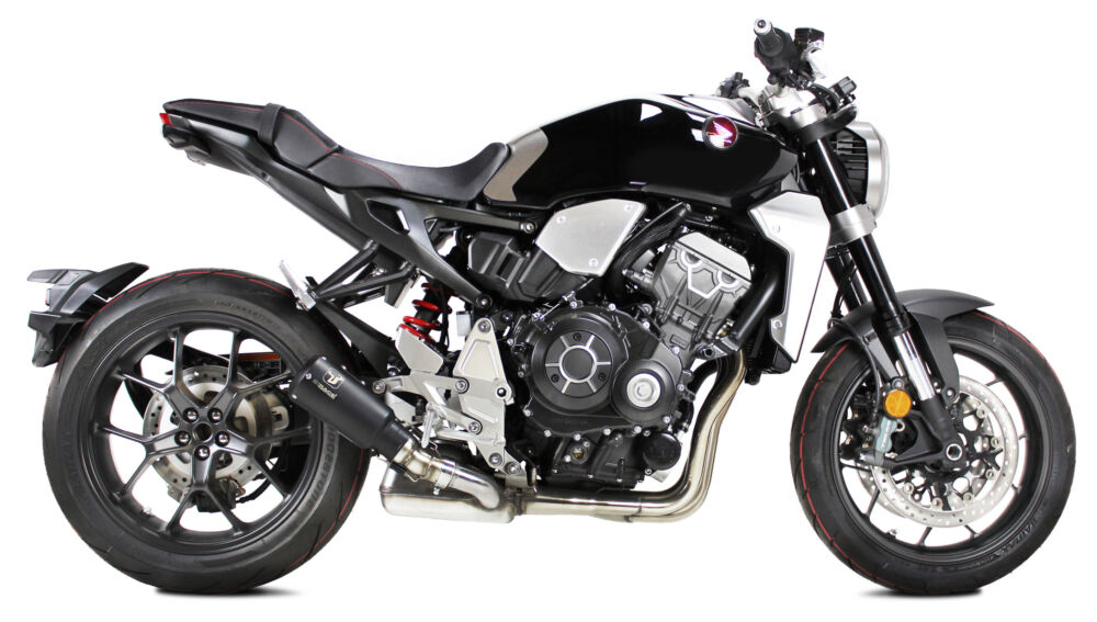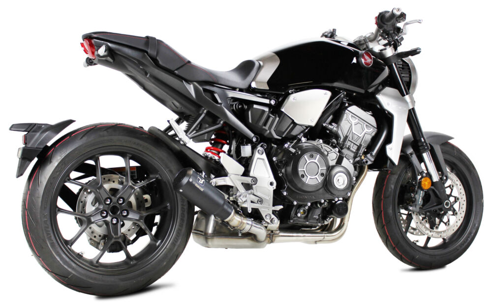 Silencieux inox noir IXRACE MK2 homologué EURO4/5 pour Honda CB1000R 2018–2023, 180 mm et 0,9 kg, finition AISI304 avec embout Moto GP et système AFS.
