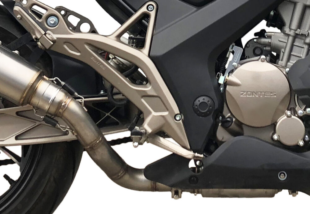 Ligne semi-complète racing inox IXRACE pour Zontes 310 X / 310 R / 310 T (2019–2020), non homologuée, allégeant la moto et améliorant son son et ses performances.