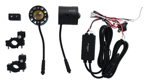 Le système de montage est universel et s’adapte aux tubes de 22–32 mm grâce à une pince à tuyau divisée et une équerre réglable pour un positionnement multi-angle. Le kit inclut un boîtier de commande intelligent avec mode ACC double conçu pour protéger la batterie de la moto, ainsi qu’une télécommande sans fil (pile incluse) pour basculer entre les fonctions sans quitter la selle.