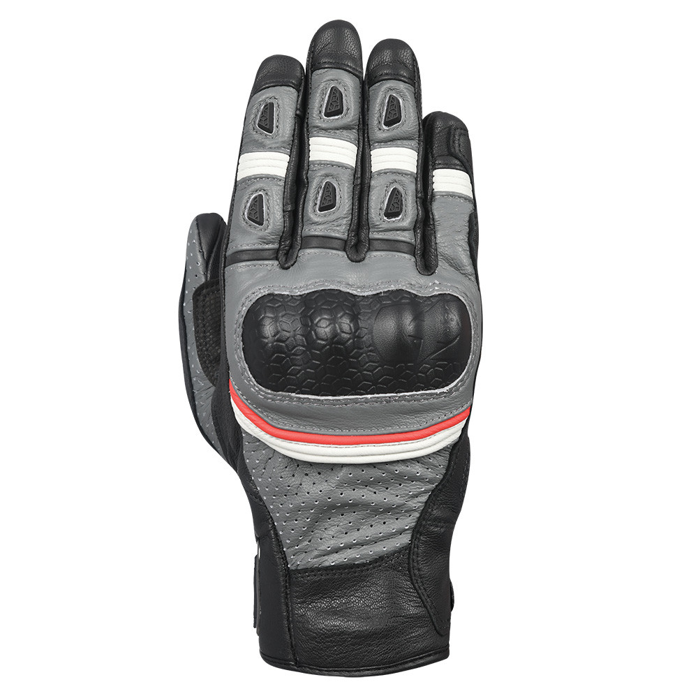 Gants moto été tout cuir Oxford pour homme, ventilation perforée et protections paume SuperFabric® et jointures TPU estampées à chaud, compatibilité écran tactile pouce/index et réglage poignet.