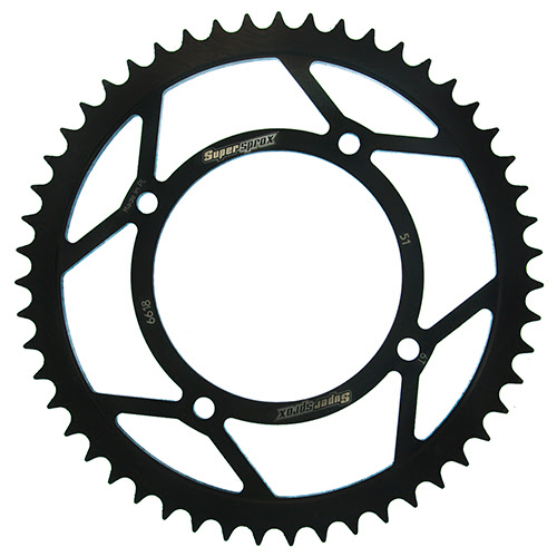 Pignon : réf. PT11911, acier haute résistance, 11 dents, pas 420. Couronne : réf. CJ10151, acier C50, 51 dents, pas 420.