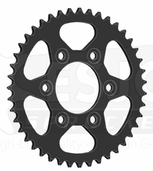 Le pignon et la couronne sont usinés en acier de qualité supérieure. L’ensemble permet une parfaite transmission de la puissance moteur à la roue arrière, tout en réduisant les vibrations et les à-coups à l’accélération.