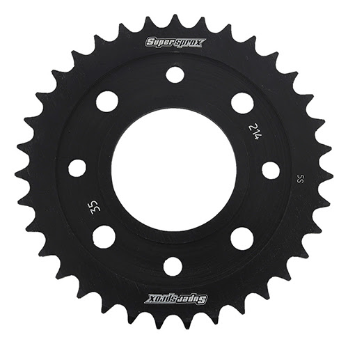 Pas 420 ; chaîne DID 104 maillons avec rivet RJ ; couronne 35 dents ; pignon sortie boîte 14 dents.