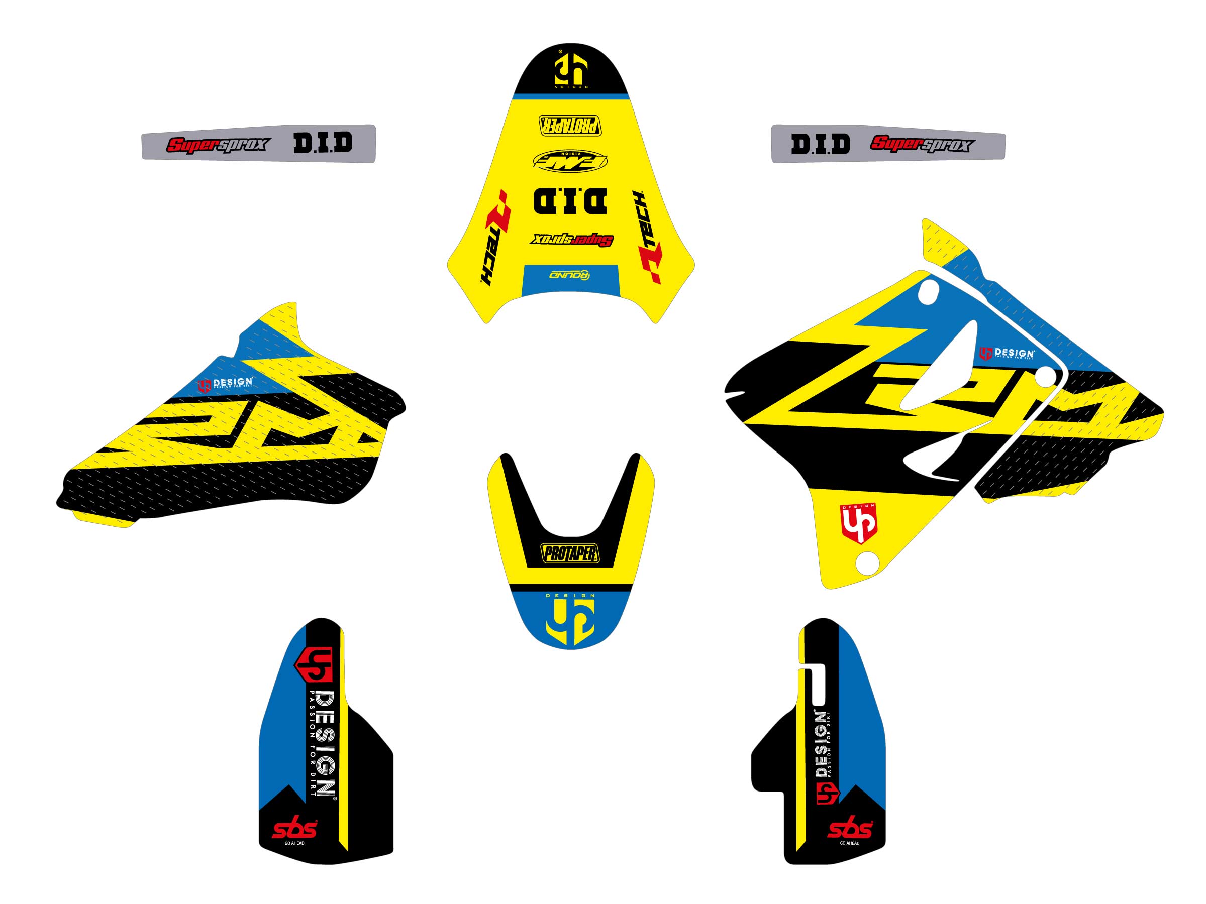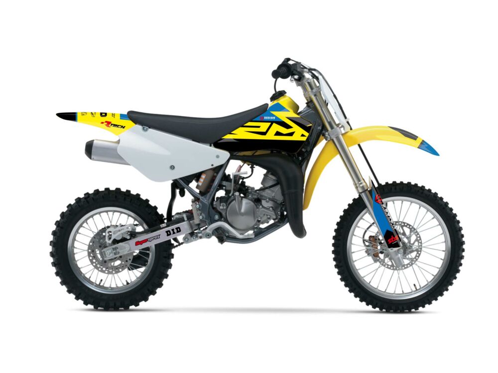 Chaque composant du kit est adapté aux dimensions et courbes spécifiques du Suzuki RM 85. Les zones décorées varient en fonction des versions du véhicule, garantissant un ajustement parfait.