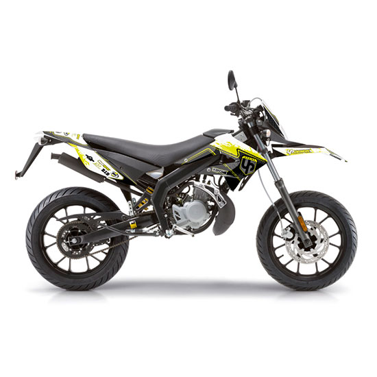 Kit déco vinyle thermoformable SPECTRUM pour DERBI DRD XTREME (2011-2016), fourni pour garde-boues, ouïes, protections et bras oscillant ; pose à chaud, résistant tout-terrain.