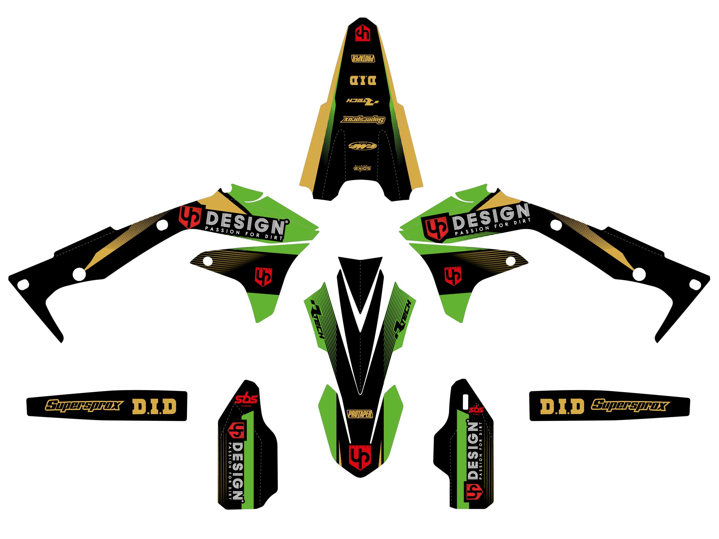 Chaque élément graphique a été conçu pour s’adapter parfaitement à votre moto de l’année 2012 (modèles KX450D et EFI). Le design noir-vert dynamique apporte une touche moderne et agressive, idéale pour vous démarquer sur les terrains ou en compétition.