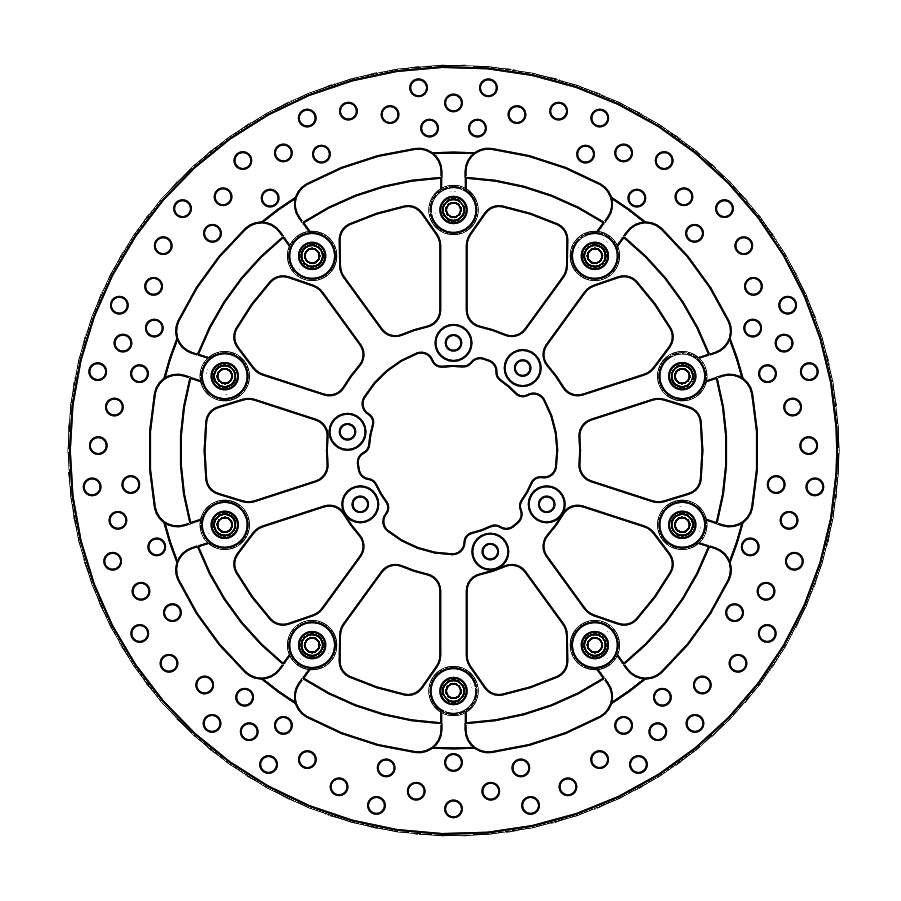 Le cœur de ce kit est un disque de frein de type “Flame” de Moto-Master, réputé pour ses performances supérieures. Son design ondulé permet une meilleure dissipation de la chaleur, limitant ainsi les risques de surchauffe lors de freinages répétés ou prolongés. Avec un diamètre de 320 mm et une épaisseur de 5 mm, ce disque flottant offre à la fois solidité et constance dans sa réponse, parfait pour les pratiques engagées du supermoto ou de la compétition.