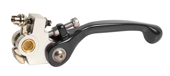 Levier d’embrayage repliable en aluminium usiné CNC, compatible avec maîtres‑cylindres Nissin. Remplacement direct livré avec caoutchouc protecteur, conçu pour usage intensif et compétition.