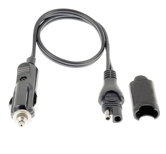 Adaptateur allume-cigare vers connecteur SAE (SAE-82/O-12) pour recharger facilement batteries via prise 12V véhicule. Compatible chargeurs Optimate et véhicules équipés d’une prise ACCESSOIRE 12V.