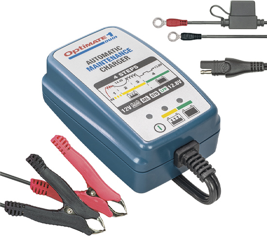 Le chargeur Optimate 1 DUO TM402-D est un véritable mainteneur de batterie longue durée, fonctionnant 24h/24, 7j/7, tout au long de l’année. Il est particulièrement recommandé si votre véhicule n’est utilisé que de manière occasionnelle ou reste immobilisé pendant les périodes hivernales. Sa fonction de désulfatation en deux phases permet de récupérer les batteries partiellement dégradées dès 4V.