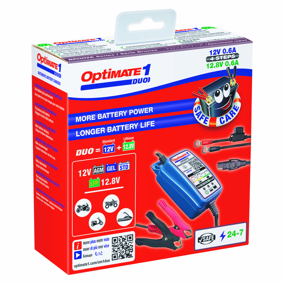 Idéal pour maintenir votre batterie en pleine forme toute l’année, le chargeur intelligent Optimate 1 DUO TM402-D est conçu pour les batteries 12V des motos, scooters et autres deux-roues. Il prend en charge aussi bien les batteries plomb-acide traditionnelles (STD, AGM, GEL) que les batteries lithium (LiFePO4) et garantit une charge fiable sans compromettre l’électronique de votre véhicule.