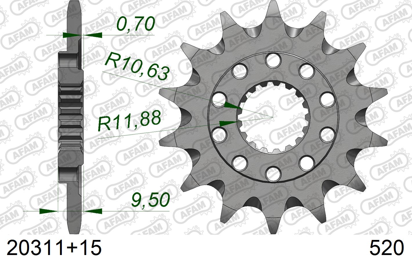 AFAM place la barre haute en matière de qualité. Ce pignon à 15 dents au pas 520 est réalisé selon des standards de fabrication stricts :