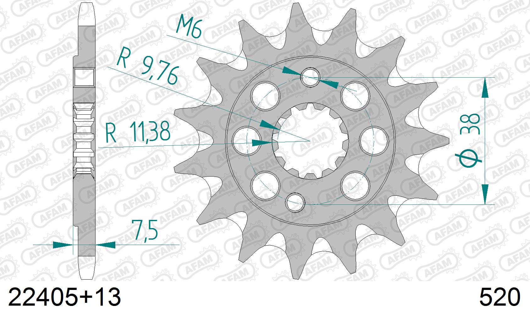 Le pignon AFAM #520 SC 22405+13 (13 dents) est conçu pour optimiser la transmission de votre moto, en particulier pour les disciplines exigeantes telles que le motocross (MX) et l’enduro. Avec un pas de 520, il garantit un excellent compromis entre efficacité, longévité et comportement dynamique sur les terrains les plus difficiles.