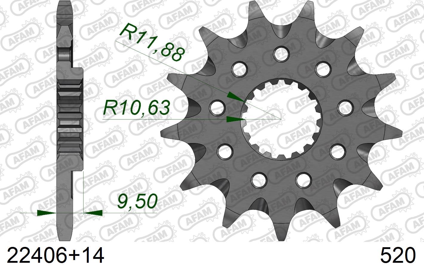 Pignon avant AFAM 14 dents pour chaîne 520, compatible Suzuki RM‑Z 450 (2005‑2007). Construction acier haute résistance avec profil anti‑boue pour durabilité et performance tout‑terrain.
