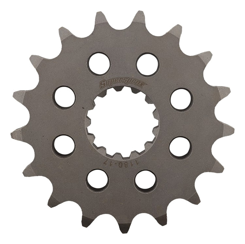 Pignon de sortie de boîte Supersprox PS80017 en acier SCM45 traité, 17 dents pas 530, compatible notamment avec Triumph Adventurer 900 (1996–2001), Daytona, Speed Triple et autres modèles 750–1200 cm³ pour une transmission durable.