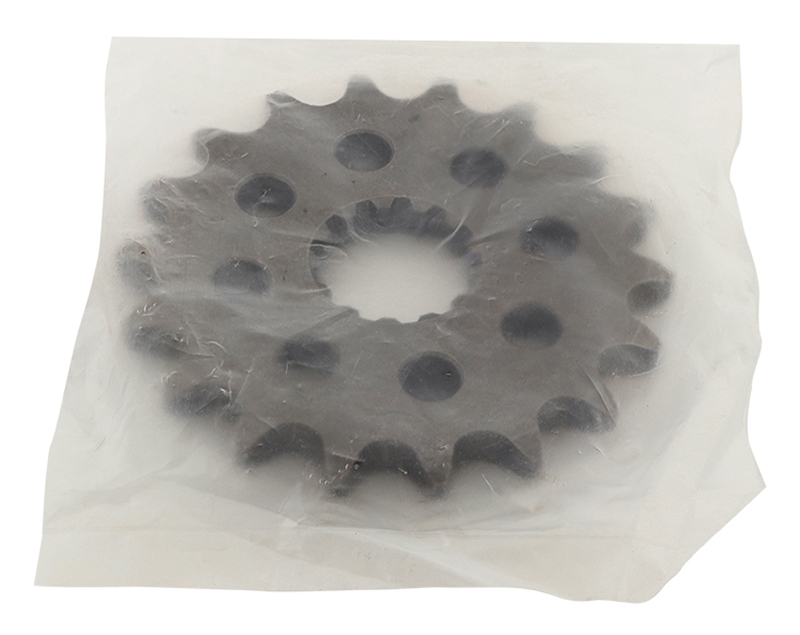 Pas de chaîne 530, 18 dents, acier SCM45 traité thermiquement, conception ajourée pour gain de poids et emballage en blister rigide et informatif.
