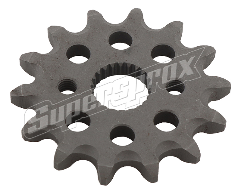 Pignon de sortie de boîte Supersprox en acier SCM45 14 dents, pas 420, compatible Honda CRF50 (2004–2024) et XR50 (2000–2003) pour une transmission plus durable et auto-nettoyante.