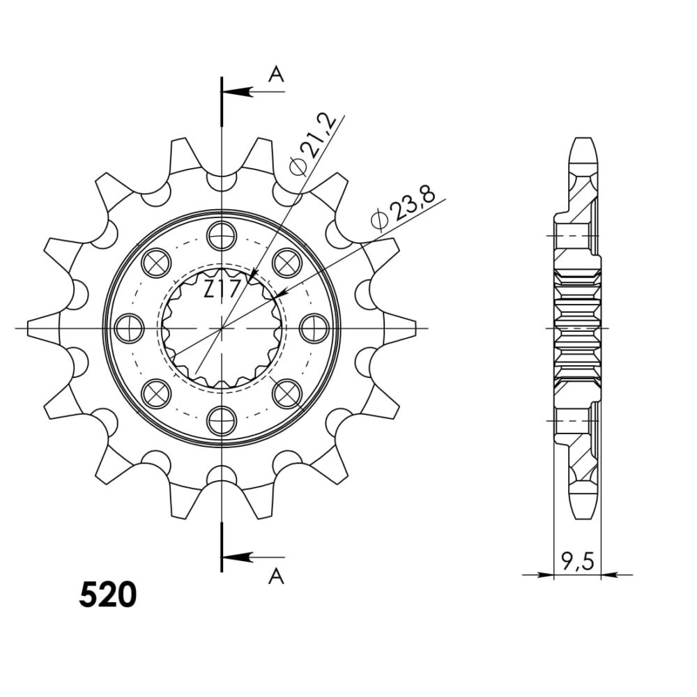 Le pignon comporte 14 dents et est au pas de chaîne 520.