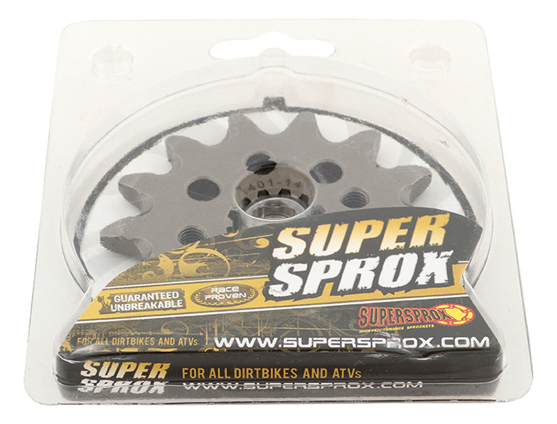 Pignon de sortie de boîte Supersprox PE31014 en acier SCM45 traité, 14 dents pas 520, compatible Kawasaki KFX400 (2002‑2006) et Suzuki LT‑Z 400 / LT‑R 450 (2003‑2019) pour usage tout‑terrain.