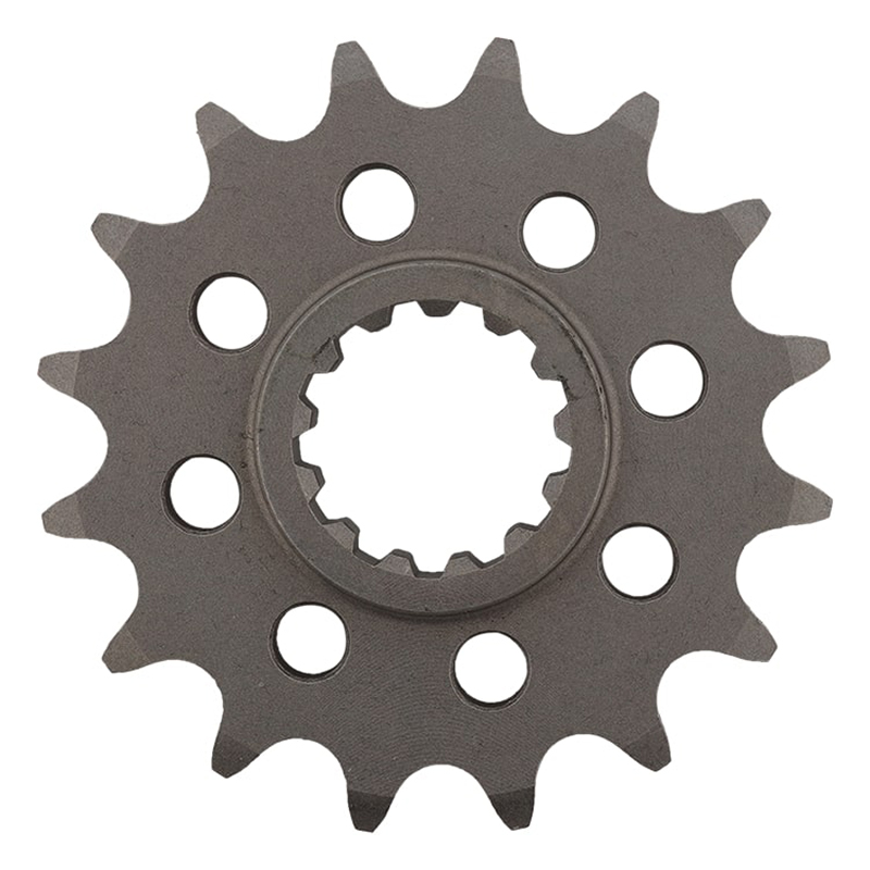 Ce pignon de 16 dents au pas 520 est fabriqué en acier SCM45 trempé, un alliage reconnu pour sa longévité face à l’usure et aux contraintes mécaniques élevées. Idéal pour une utilisation routière comme pour un usage plus sportif, il est également doté d’un design ajouré permettant de réduire son poids sans compromettre sa solidité. Sa denture est spécifiquement usinée pour assurer un nettoyage dynamique lors de la rotation, limitant l’accumulation de résidus susceptibles d’altérer les performances de la transmission.