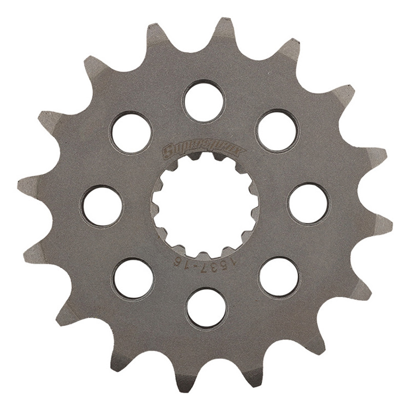 Pignon de sortie de boîte Supersprox PE60316 en acier SCM45 traité, 16 dents pas 525, compatible Kawasaki Z1000 (2003–2006) et ZX‑9R (2002–2003) pour une transmission plus durable et performante.