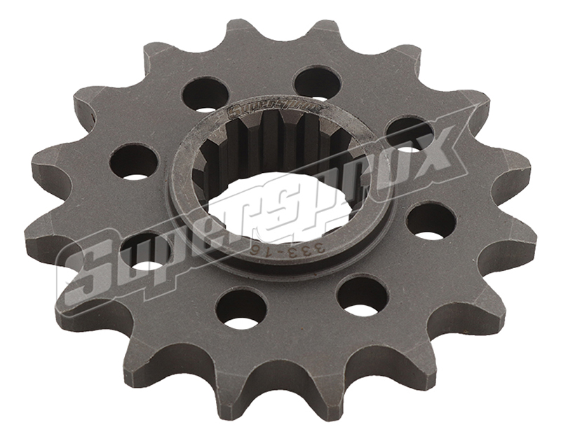 Pignon de sortie de boîte en acier SCM45 traité thermiquement, 16 dents pas 530, compatible notamment Honda CB1000R SC60 (2008–2016) pour une transmission plus durable et réactive.