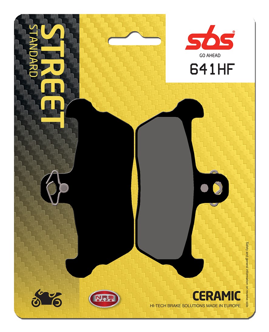 Plaquettes de frein organiques SBS 641HF pour Aprilia ETX350 et modèles compatibles (Aprilia/Cagiva) — usage routier street, freinage progressif et réduction du bruit, montage avant et arrière.