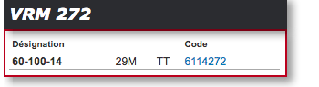 Quelles sont la dimension et l’indice de charge/vitesse du VRM 272 60/100-14 ?