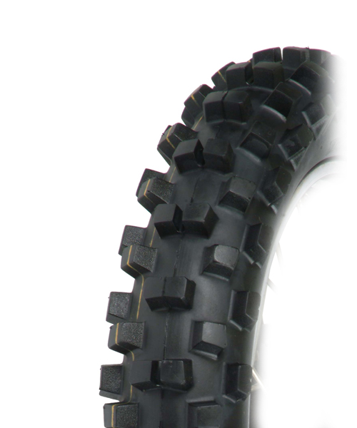 Ce pneu à carcasse diagonale (TT – Tube Type) est particulièrement adapté aux conditions entre le tendre et le moyen, comme les pistes forestières, les sentiers sablonneux ou les surfaces légèrement boueuses. Il est idéal pour les jeunes pilotes ou les motos de petite cylindrée équipées de roues 12 pouces.