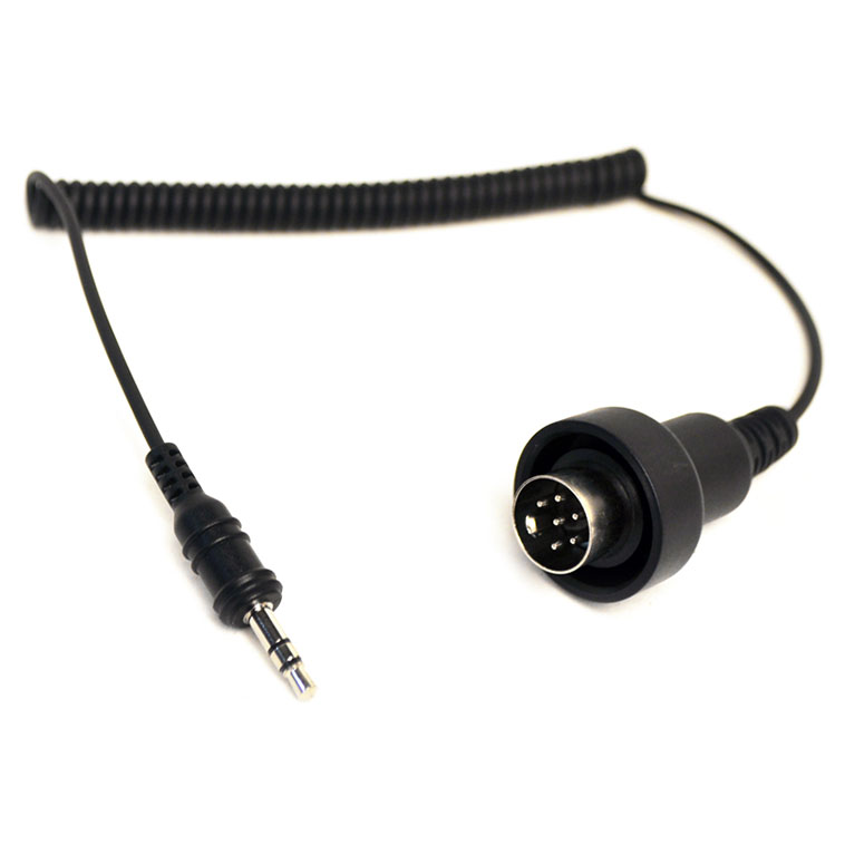 Adaptateur audio stéréo jack 3,5 mm vers connecteur DIN 6 broches, compatible avec le système audio de la BMW K1200LT pour connecter smartphone ou lecteur et écouter la musique en roulant.